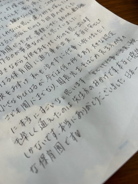 卒園式が終わって、翌日保護者の方からお手紙をいただきました。