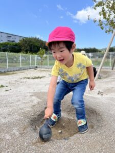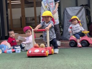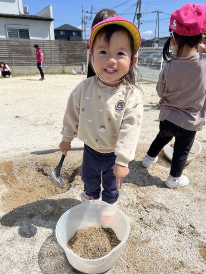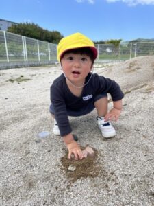 ということで、この日は3歳以上のこども園のこではなく、小規模保育施設の小さな子たちがえんちょ~まんか~でどろだんご道場で遊びました♪