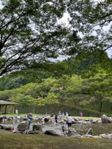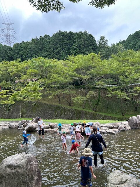 曇り空でしたが、その冷たい川の水に歓声を上げながら