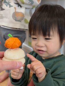 本物のお餅を可愛いお手々でチョンチョンさわってみたり…