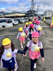 行きは年少組さんが年長組さんと、